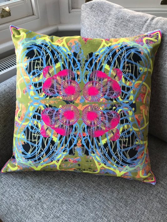 'Blue Trumpet' Velvet Cushion 50cm x 50cm